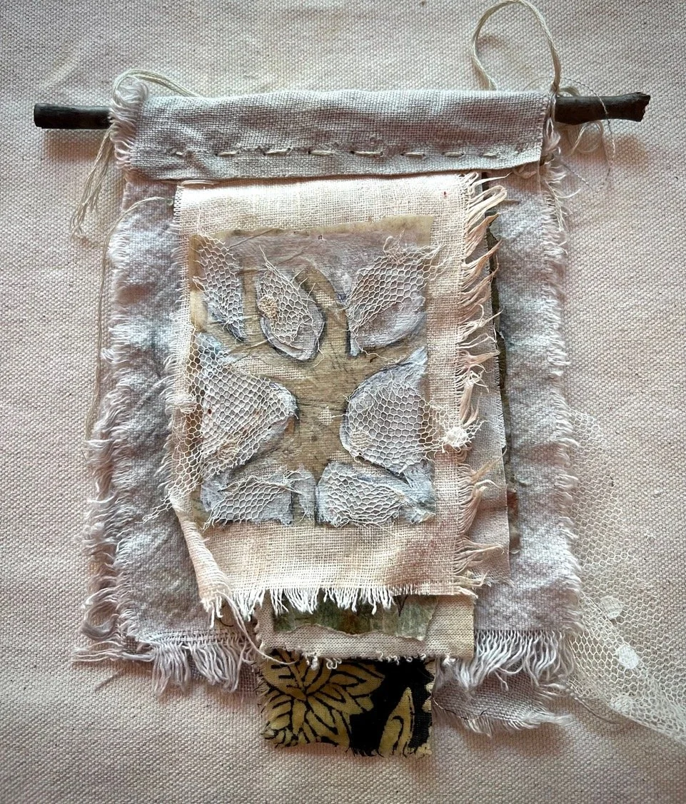 Learn glazing and painting techniques to stain fabric and paper scraps